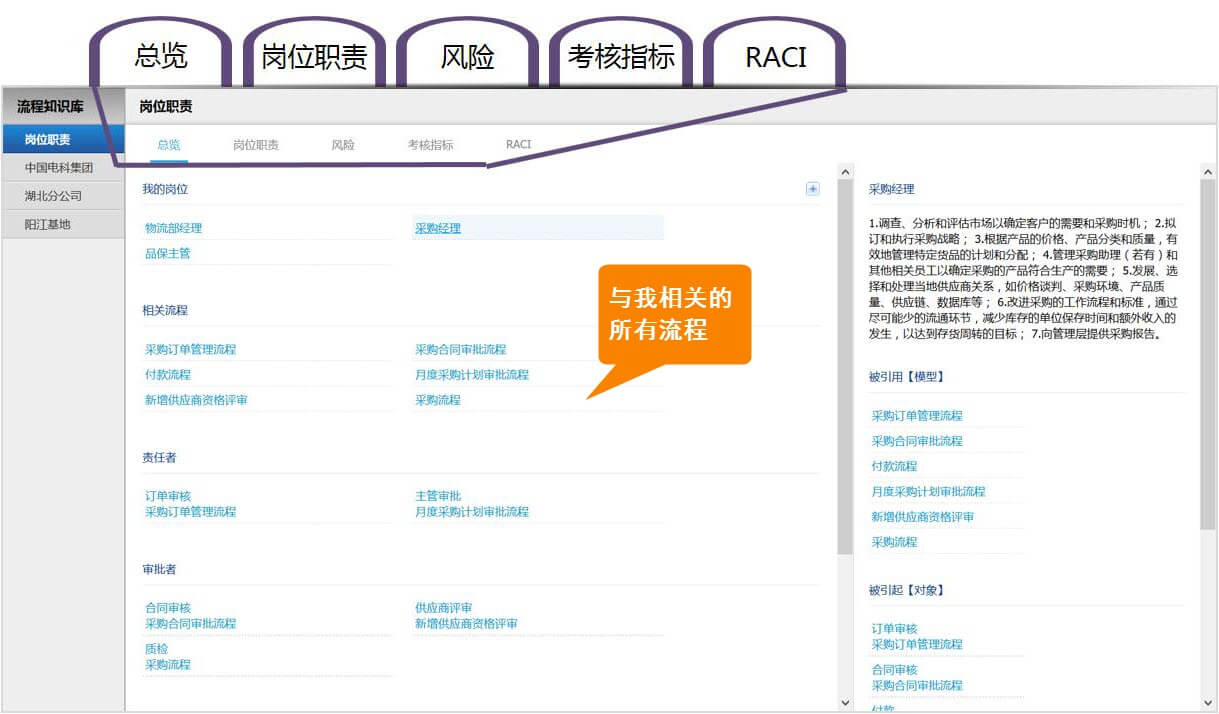 随后,就能在页面中查看到我的岗位职责、岗位风险、考核指标、与同事间的协作关系等相关信息,如下图所示