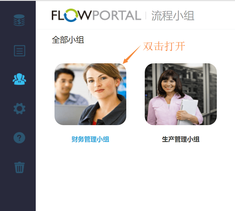 选择【财务管理小组】,双击打开,进入【财务管理小组】的工作空间。