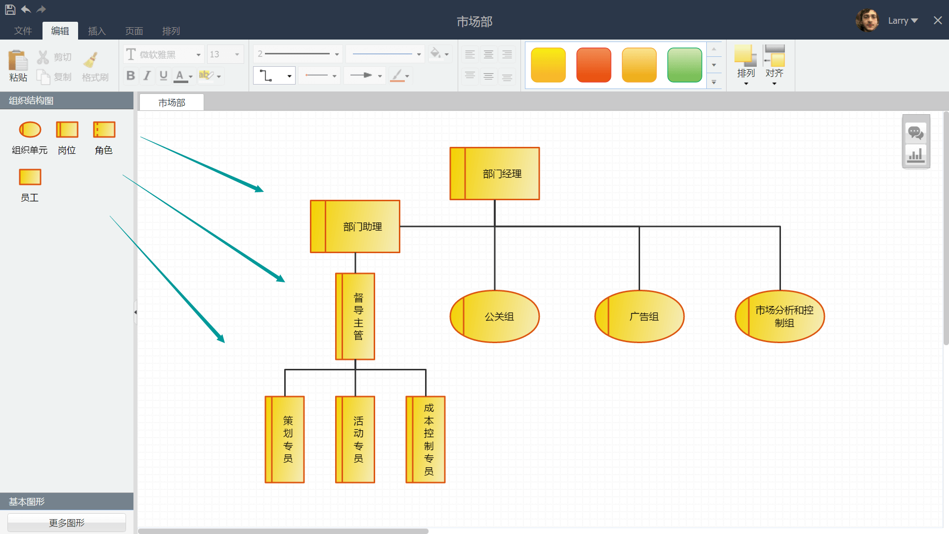进入组织结构梳理界面后,通过拖拉左侧组织结构图,绘制组织结构。